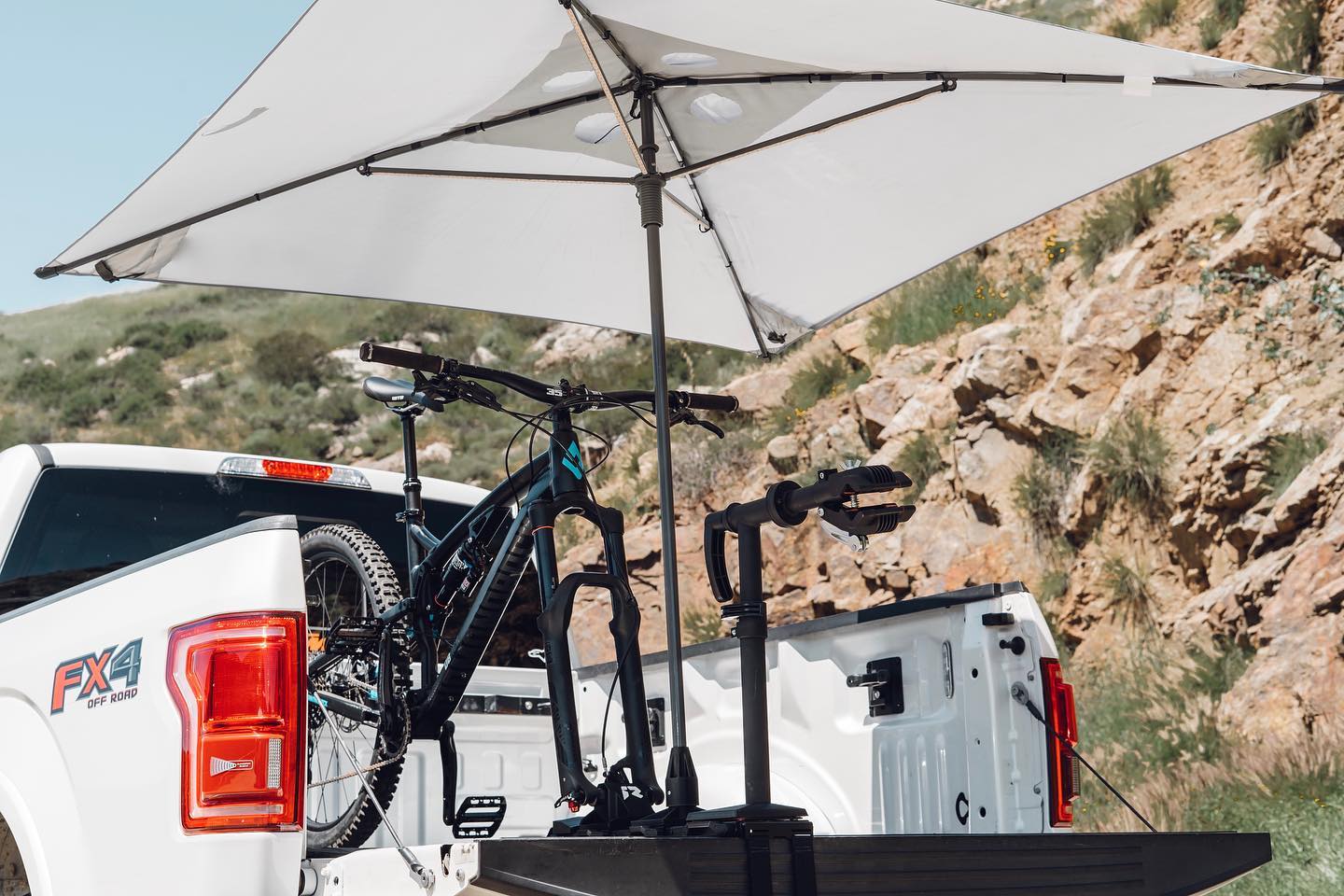 Si ese fuera el last, Railias seguiría siendo un sistema bastante bueno, pero hay más. Si solicita el sistema Professional Tailgate Rack System, incluye una sombrilla o un elegante paraguas que se monta en el Sportrail para colgarlo en el portón trasero antes y después del viaje. Es cierto que el paraguas de $ 325 (cuando se vende por separado) es una opción costosa, pero si vives en un lugar con sol intenso, podría valer la pena.
