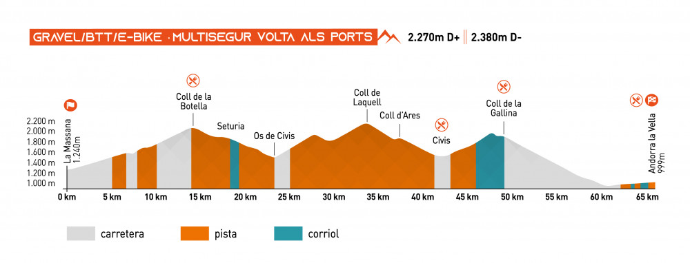 Como novedad en esta edición la VOLTA ALS PORTS D’ANDORRA ha añadido un recorrido de GRAVEL/BTT/E-BIKES.